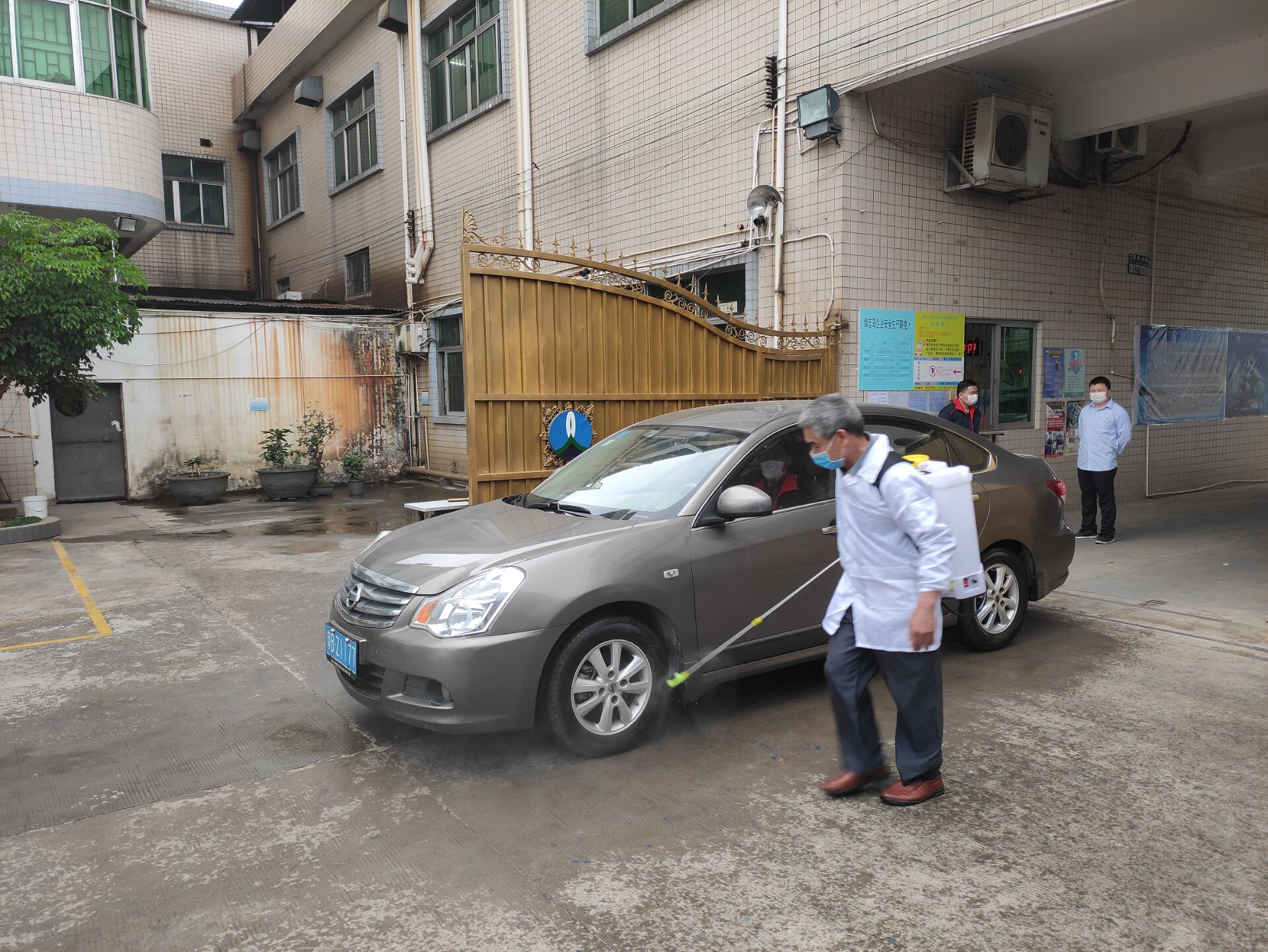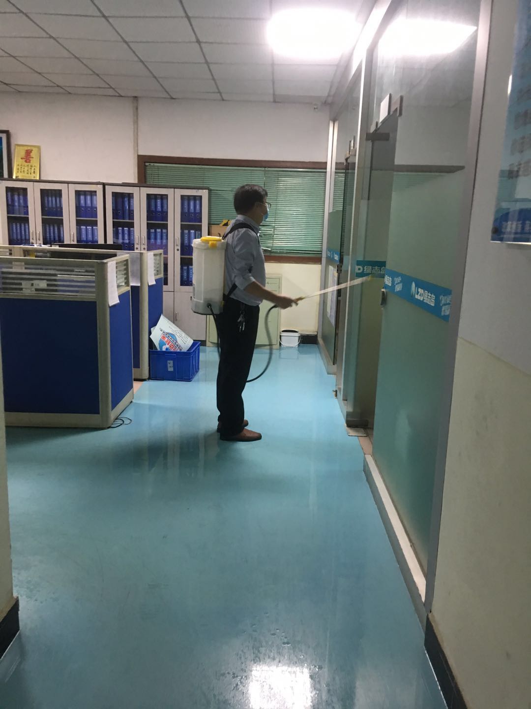 ▲賴(lài)總對(duì)車(chē)間每個(gè)角落用84消毒水進(jìn)行消毒