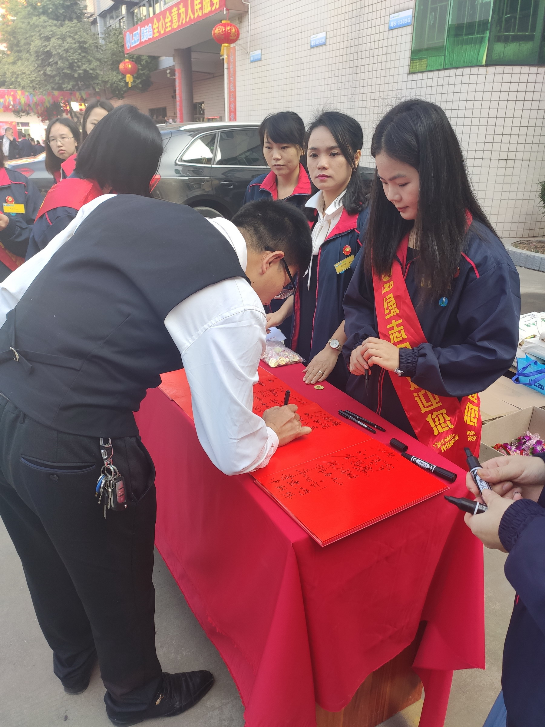 ▲綠志島總經(jīng)理賴高平先生為嘉賓寫花籃語(yǔ)